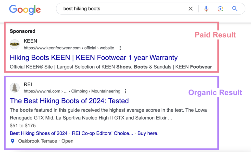 Paid ads can be seen in search engine with the label “Sponsored” or “Ad” as shown below